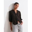 Dilvin 5807 Nervür Detaylı Balon Kol Gömlek-koyu Kahve Koyu Kahve