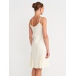 Eteği Volanlı Uzun Elbise Kırık Beyaz