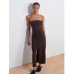 Dilvin 90758 Straplez Elbise-koyu Kahve Koyu Kahve