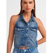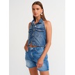 Dilvin Arkası Açık Yakalı Denim Yelek-mavi Mavi