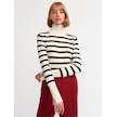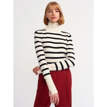 Dilvin Balıkçı Yaka Çizgili Droplu Kazak Krem 001
