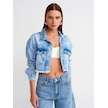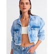 Dilvin Crop Denim Ceket Mavi