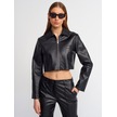 Dilvin Crop Suni Deri Ceket Siyah