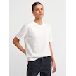 Dilvin Dekoratif Dikişli Bisiklet Yaka Tshirt Ekru