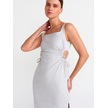 Beyaz Kriptografik İpli Bacak Dekolteli Maksi Elbise Beyaz