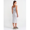 Dilvin Pencere Detaylı Uzun Elbise Gri Melanj