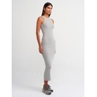 Dilvin Yıkama Efektli Midi Elbise Gri Açık Gri