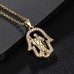 Dini Bakır Mikro Mıhlanmış Renkli Zirkon Taşlı Pandantif, Kadın Takısı, Katolik Meryem Ana Kolyesi M. M. Altın