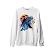 Dinosaur Shouting From A Triangle Background Beyaz Erkek Kalın Sweatshirt 001