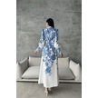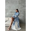 Dipmoda Kadın Kemerli Uzun Desenli Gömlek Elbise Dpms4220 Mavi