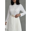 Dipmoda Kadın Krep Kumaş Dantel Detaylı Kemerli Uzun Elbise Dpms2525 Beyaz