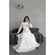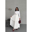 Eteği Volanlı Uzun Elbise Kırık Beyaz