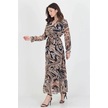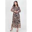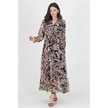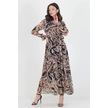 Dipmoda Kadın Kruvaze Yaka Bağlama Detaylı Eteği Fırfırlı Uzun Şifon Elbise Kts003 Camel/siyah