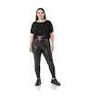 Disentis Büyük Beden Beli Lastikli Bilek Hizasında Deri Tayt Siyah