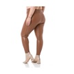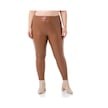 Disentis Büyük Beden Beli Lastikli Bilek Hizasında Panelli Deri Tayt Kahverengi