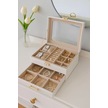 Dışı Deri İçi Kadife Kilitli Çekmeceli Takı Bijuteri Mücevher Kutusu Organizer Düzenleyici Beyaz İth