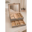 Dışı Deri İçi Kadife Kilitli Çekmeceli Takı Bijuteri Mücevher Kutusu Organizer Düzenleyici Gri İthal