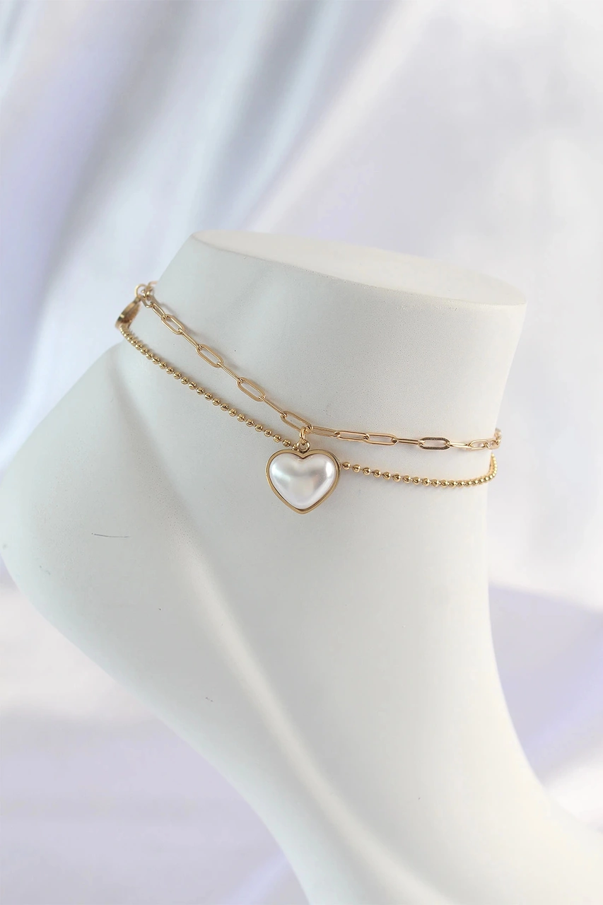 Dodes 316l Çelik Gold Renk Beyaz Kalpli 2li Halhal Tg27hh1584 Çok Renkli
