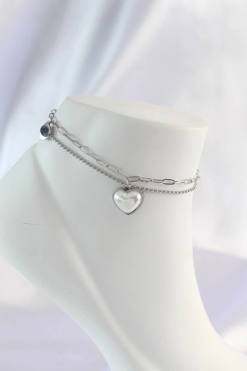 Dodes 316l Çelik Gümüş Renk Beyaz Kalpli 2li Halhal Tg27hh1585 Çok Renkli
