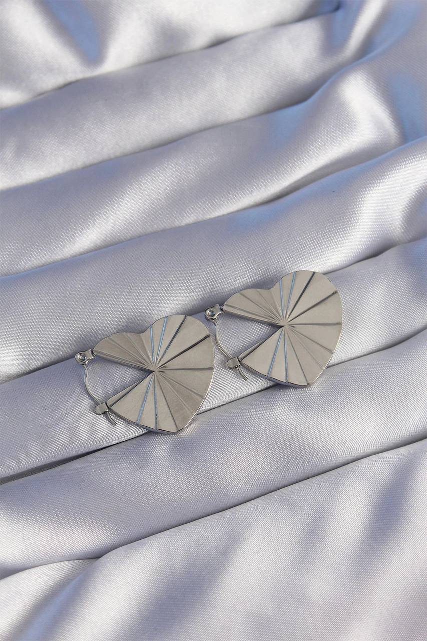 Dodes 316l Çelik Gümüş Renk Çizgili Plaka Tasarımlı Kalp Küpe Tg27bkp9041 Çok Renkli