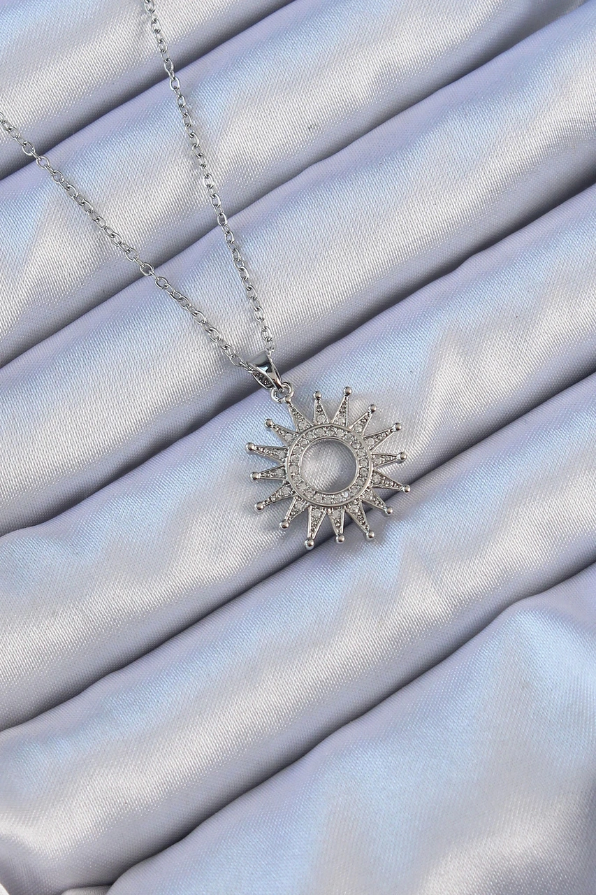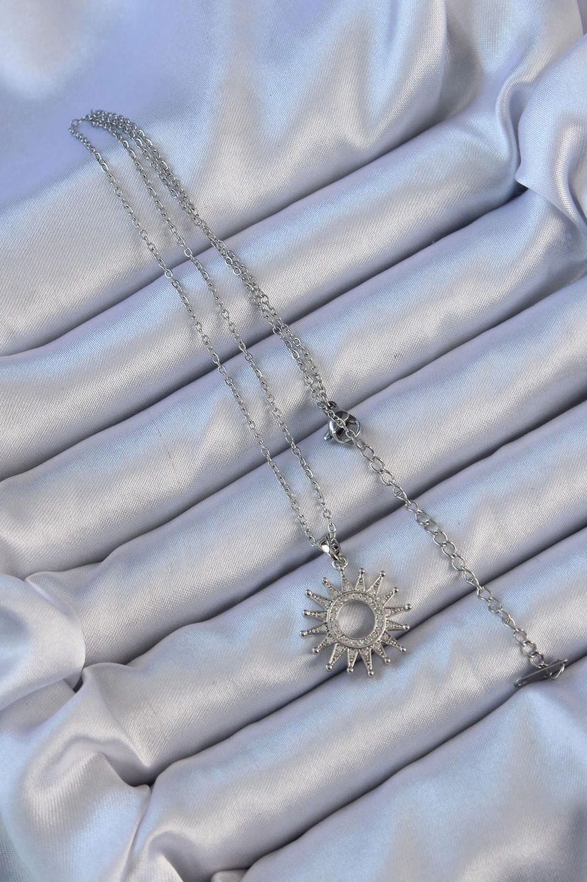 Dodes 316l Çelik Zincir Gümüş Renk Zirkon Taşlı Parlayan Güneş Kolye Tg27bko9106 Çok renkli