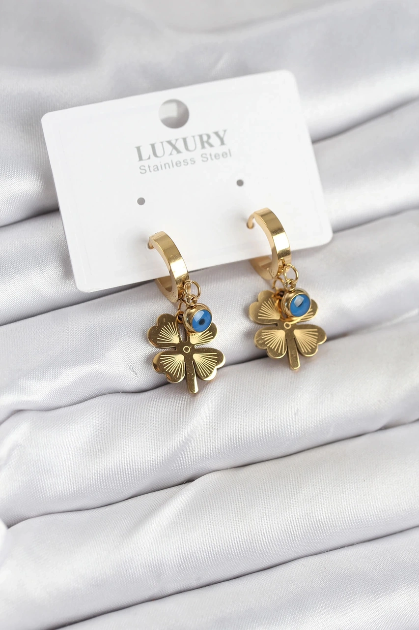 Dodes Dodes 316l Çelik Nazarlı Yonca Model Kadın Küpe Tg27bkp11230 Çok Renkli