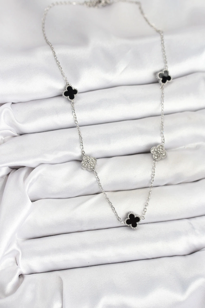 Dodes Dodes 316l Çelik Zincir Gümüş Renk Siyah Ve Zirkon Taşlı Baby Boy Yonca Kadın Kolye Tg27bko105 Çok renkli