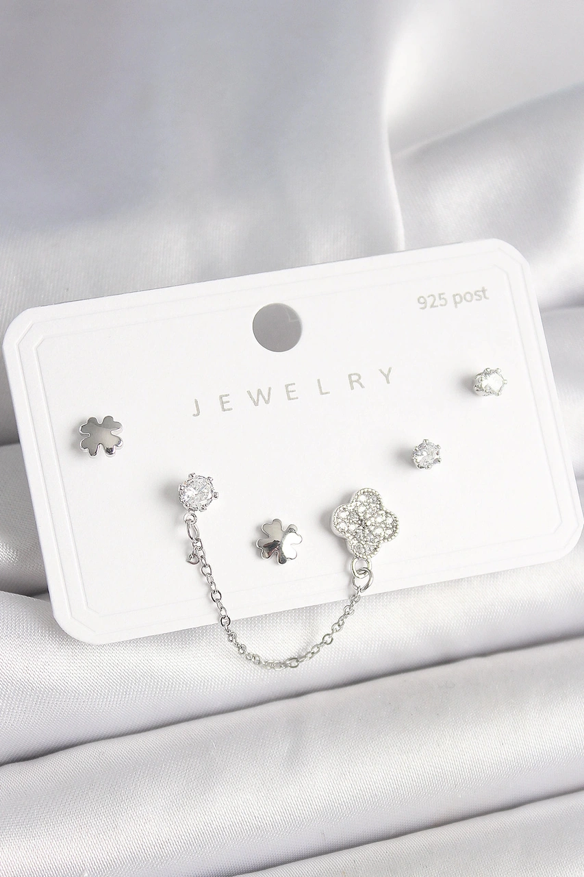 Dodes Dodes 925 Ayar Gümüş Çivi Pirinç Gümüş Renk Zirkon Taşlı Yonca Model Sallantı Zincir Detay Kad Çok Renkli