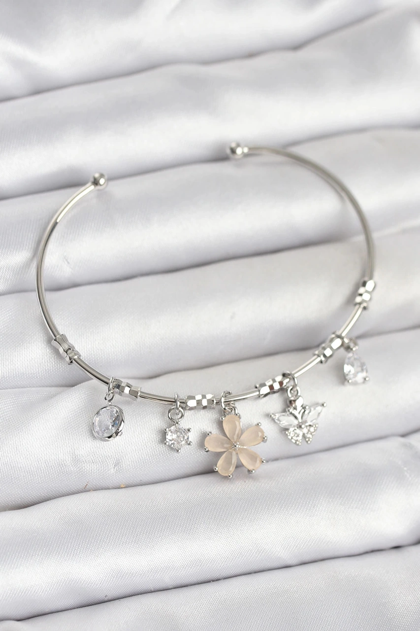 Dodes Dodes Çiçek Ve Kelebek Charmlı Gümüş Renk Pirinç Kadın Bileklik Tg27bb8050 Çok Renkli