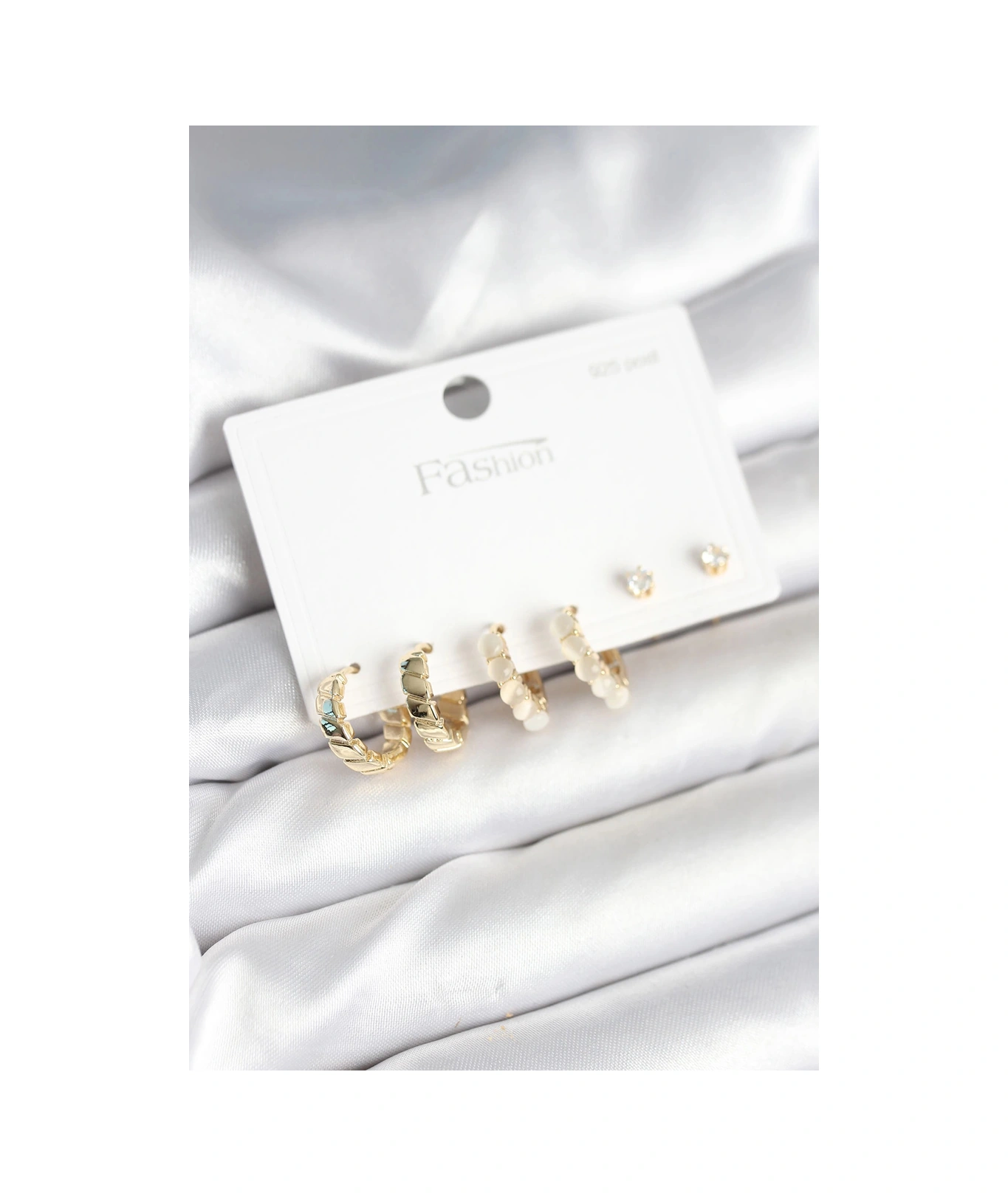 Dodes Dodes Gold Renk Pirinç Halka 925 Ayar Gümüş Çivili Kadın Küpe Seti Tg27bkp11272 Çok Renkli