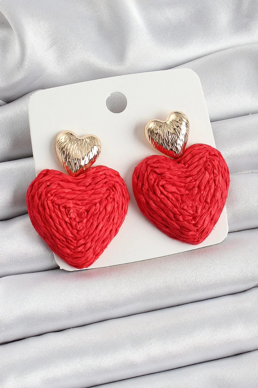 Dodes Dodes Kırmızı Kalp Figürlü Hasır Örgü Model Gold Renk Kadın Küpe Tg27bkp10735 Çok Renkli