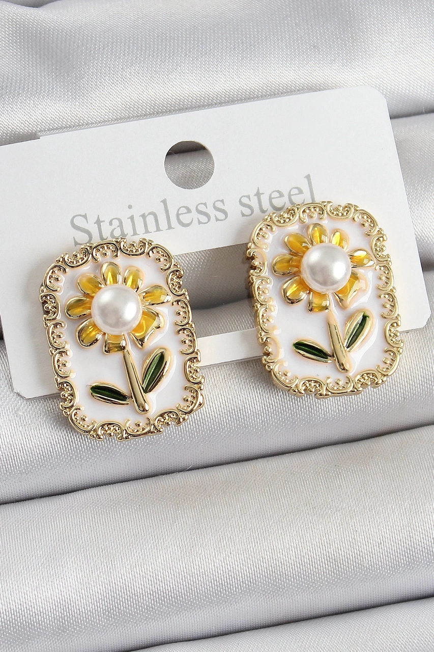 Dodes Dodes Pirinç Beyaz Mineli Papatya Figürlü Sanatsal Portre Model Gold Renk Kadın Küpe Tg27bkp10 Çok Renkli