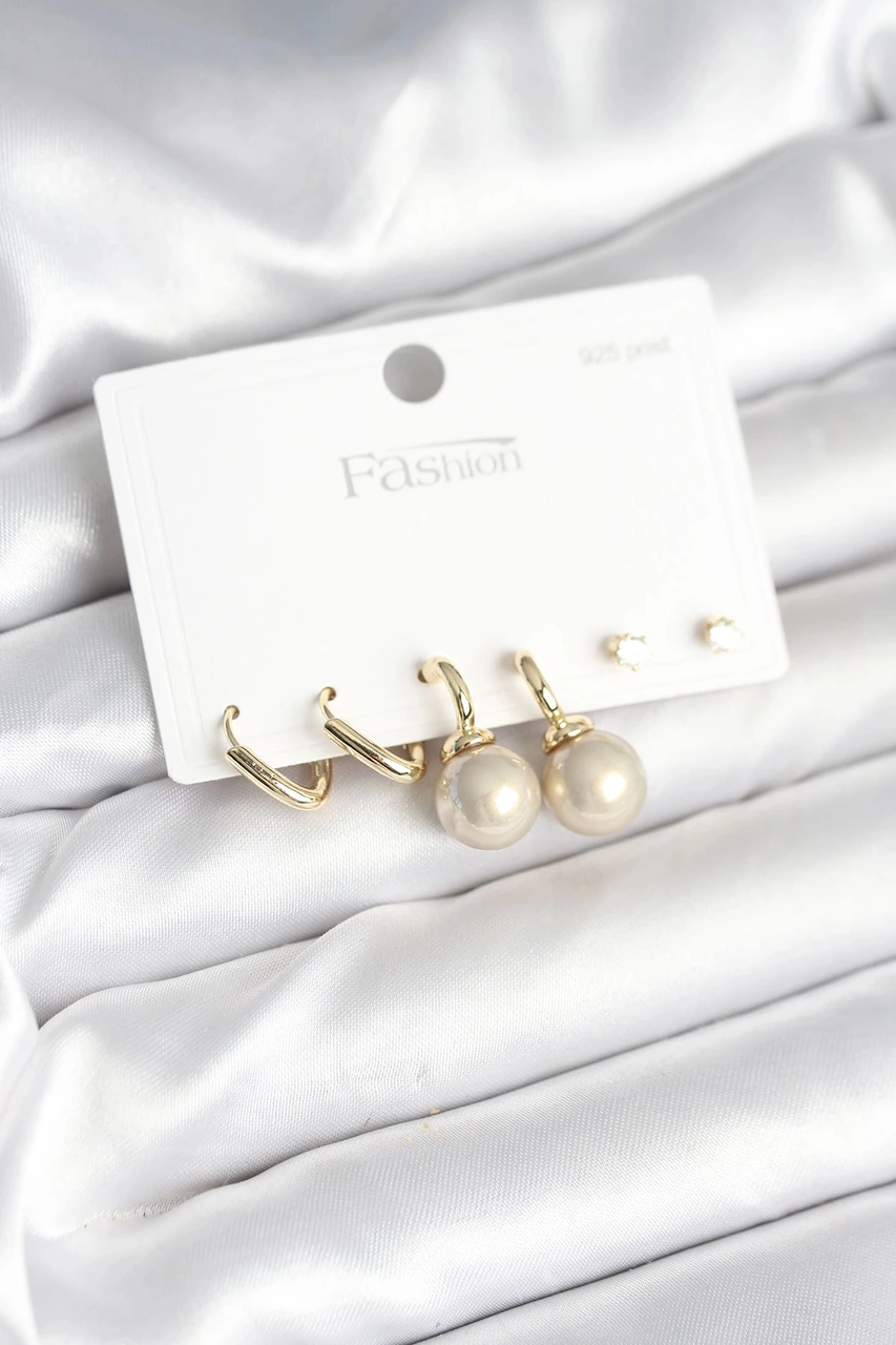 Dodes Dodes Pirinç Gold Renk İnci Detaylı 925 Gümüş Çivili Kadın Küpe Seti Tg27bkp11253 Çok Renkli