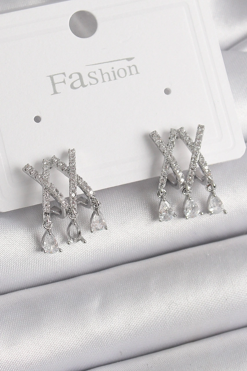 Dodes Dodes Pirinç Gümüş Renk Zirkon Taşlı X Model Sallantı Detay Kadın Küpe Tg27bkp9873 Çok Renkli