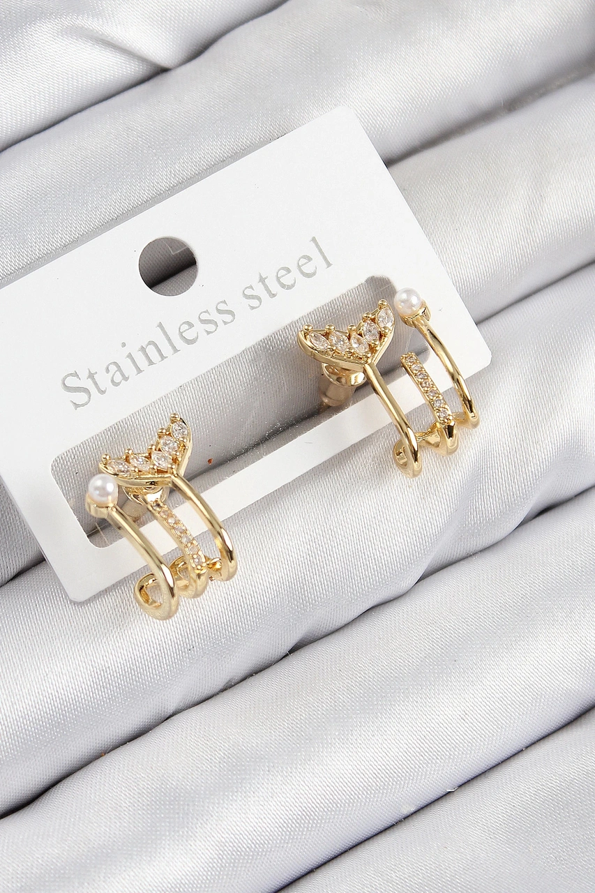 Dodes Dodes Pirinç Zirkon Taşlı İnci Detaylı Balık Kuyruğu Model Gold Renk Kadın Küpe Tg27bkp11093 Çok Renkli