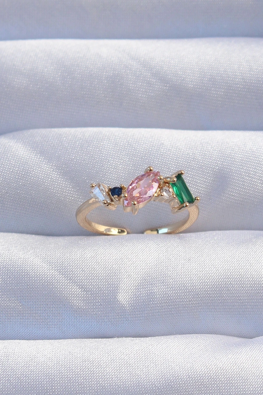 Dodes Pirinç Gold Renk Renkli Zirkon Taşlı Ayarlanabilir Yüzük Tg27byk3237 Çok Renkli