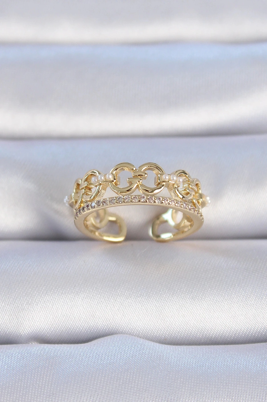 Dodes Pirinç Gold Renk Zirkon Taşlı İnci Detay Kadın Yüzük Tg27byk3334 Çok Renkli