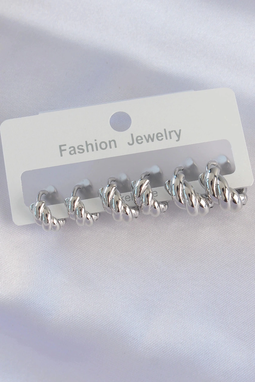 Dodes Pirinç Gümüş Renk Minimal Tırtıklı Küpe Seti Tg27bkp8991 Çok Renkli