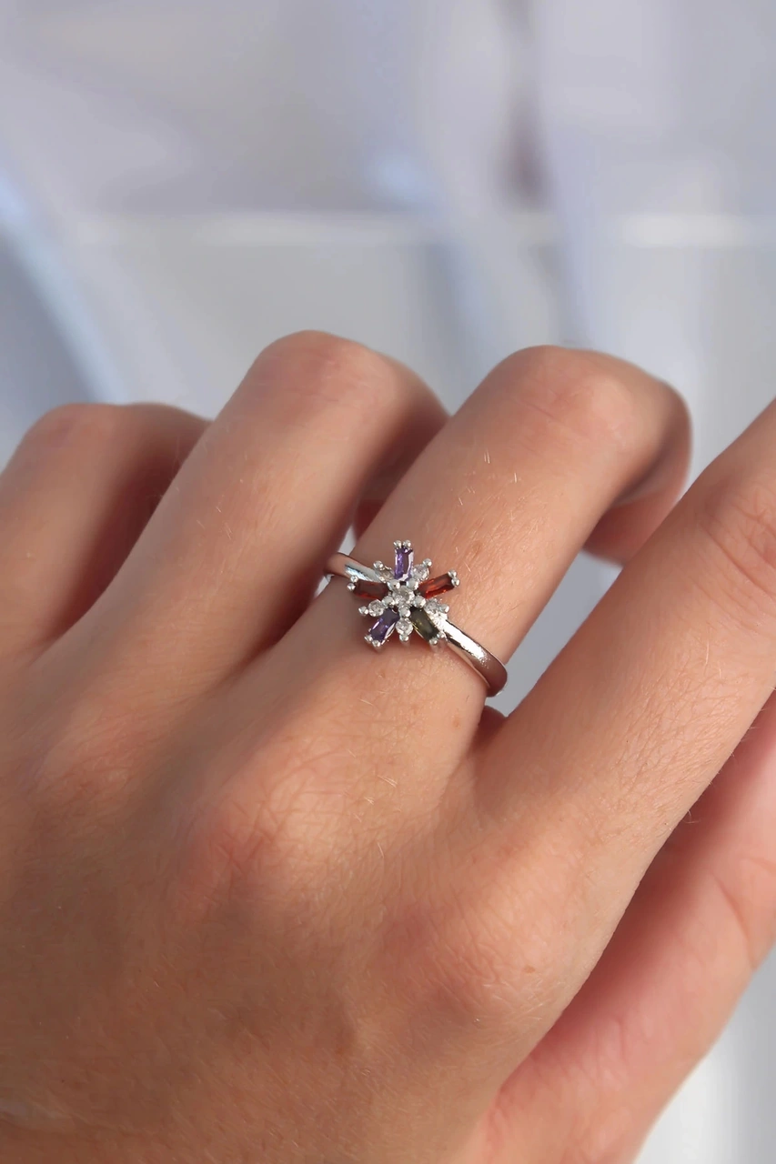 Dodes Pirinç Gümüş Renk Renkli Zirkon Taşlı Ayarlamalı Yüzük Tg27byk3270 Çok Renkli