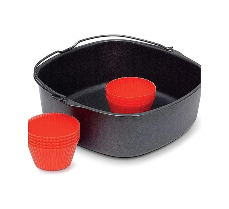 Dofolink 8 İnç Fritöz Aksesuar Seti: Kare Fırın Sepeti, Kek Kova Ve 9 Bardak - Demir Malzeme
