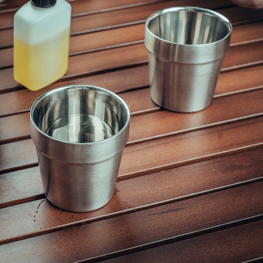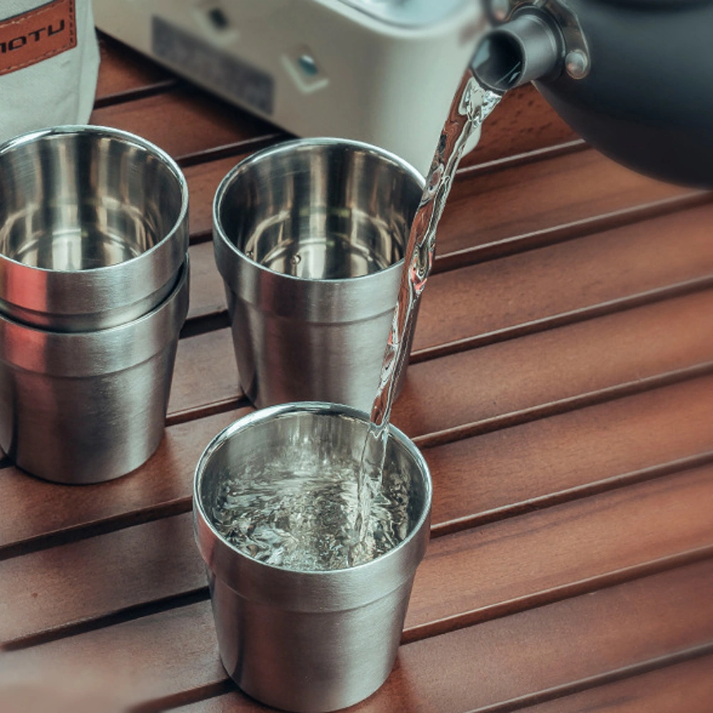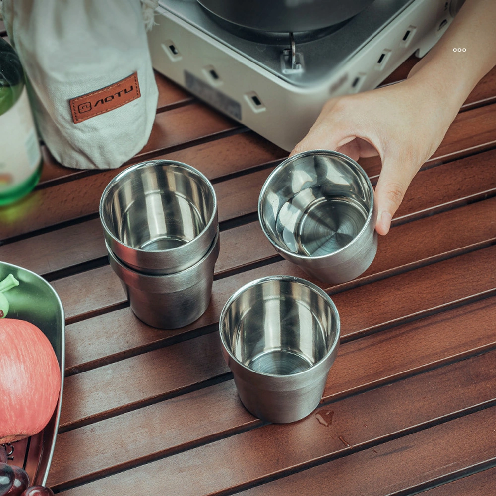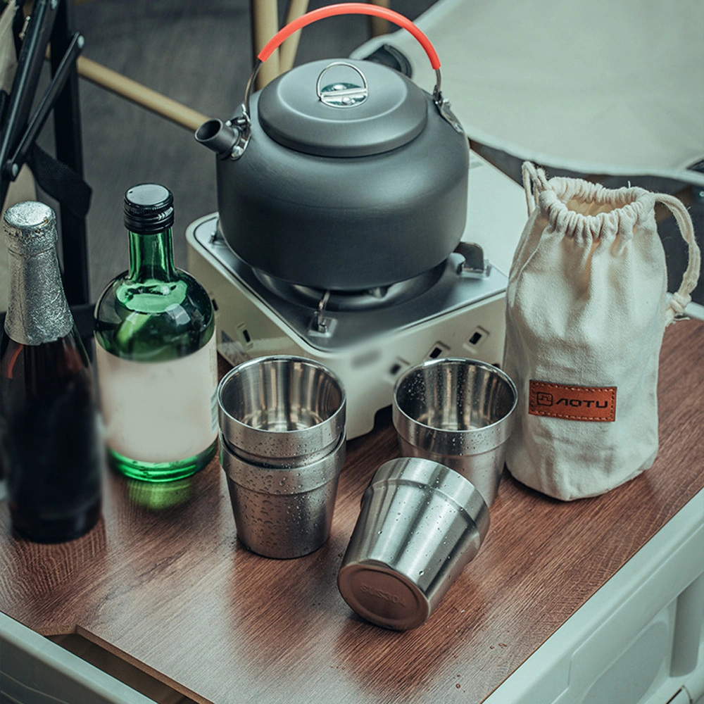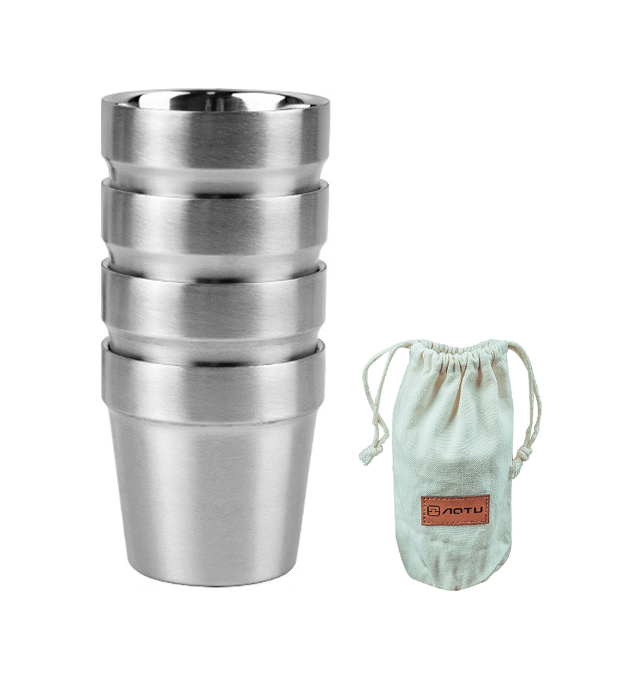 Dofolink Dışarıda Kullanım 304 Paslanmaz Çelik 4'lü Bardak Seti, Taşınabilir Isıya Dayanıklı Kamp Çay Bardağı, Depolama Çantasıyla Gümüş