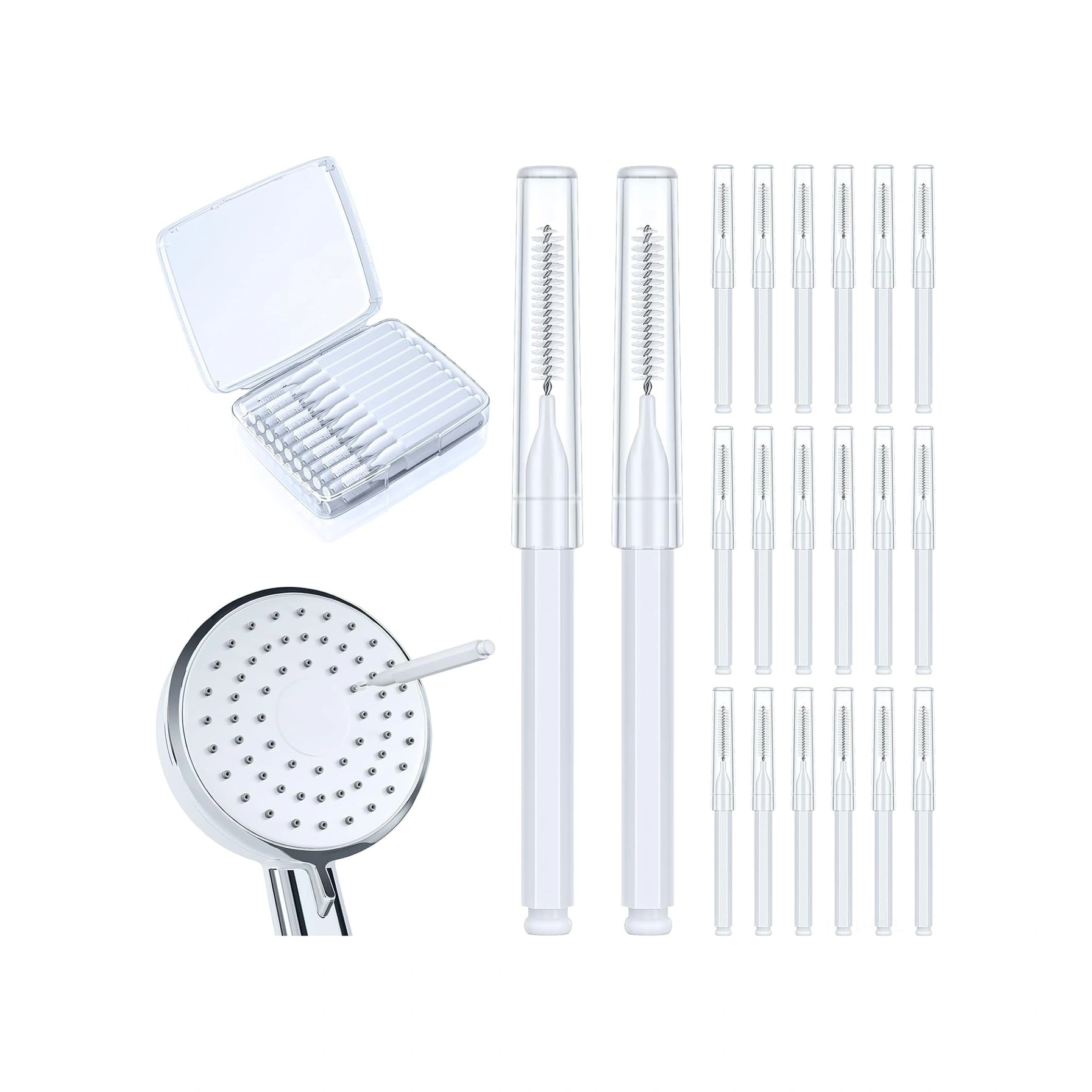 Dofolink Duş Başlığı Tıkanıklık Açıcı Seti - 20 Adet Nylon Fırça İle Delik Temizliği, Anti-kayma Kolu Ve Depolama Kutusu - Banyo Temizlik Aleti Beyaz