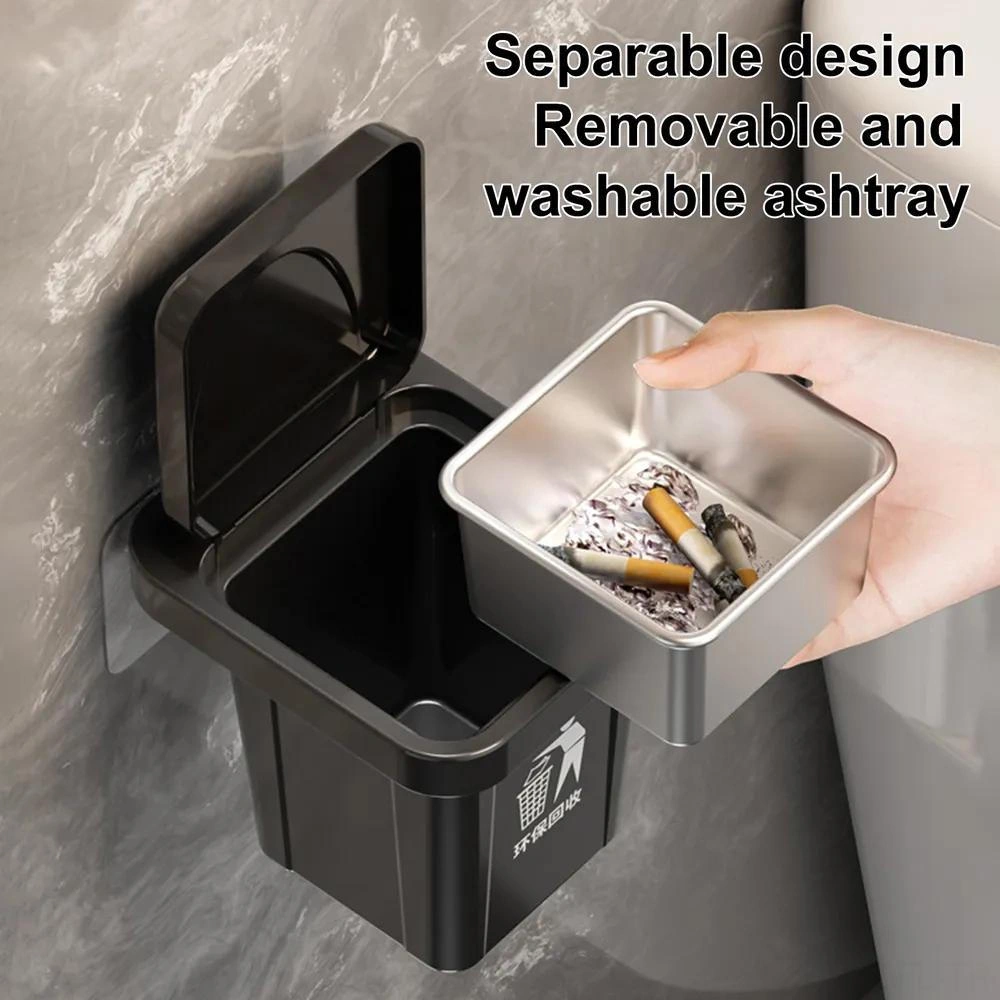 Dofolink Duvar Tipi Sigara Tüpü - Siyah Abs Ve Çelik Materyal, Duvar Takılı Çöp Kutusu Ve Sigara Tüpü Kombinasyonu Siyah