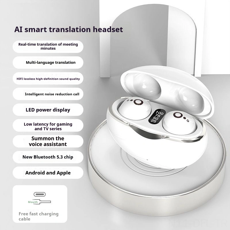 Dofolink S800 Mini Akıllı Çeviri Kulaklığı: Bluetooth, Sayısal Ekran, Gürültü Engelleme, Düşük Gecikme, Beyaz