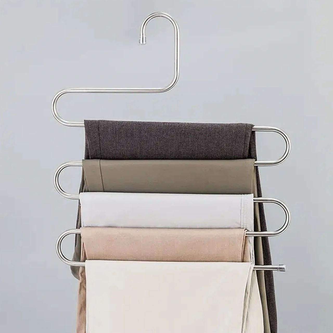 Dofolink Stainless Steel S-şekilli Çok Amaçlı Giyim Rafı - Pantolon, Atkı, Bel Bantı Saklama - 5 Çift Kapasite - Boşluk Tasarrufu - Dayanıklı Ve Pas Koruyucu Gümüş