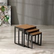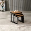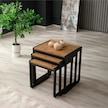Doğal Ahşap Masif Panel Üçlü Zigon Sehpa Siyah