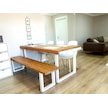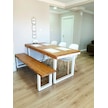 Doğal Ahşap Yemek Masası 10 Kişilik 80-220-76 Cm Beyaz Metal Ayak