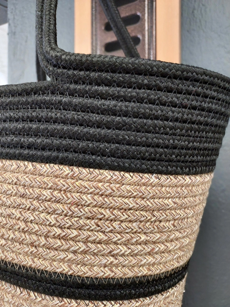 Doğal Hasır Jüt El Örmesi Bayan Çanta-bej Siyah Çizgili V1 Bej