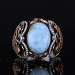 Doğal Larimar Taşlı Yüzük, 925k Saf Gümüş Erkek Yüzüğü, Okyanus Sakinliği Tasarımı Gümüş
