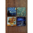 Doğal Taş Bardak Altlığı Vincent Van Gogh Eserleri Baskılı 4'lü Set - Stone Coasters Çok Renkli